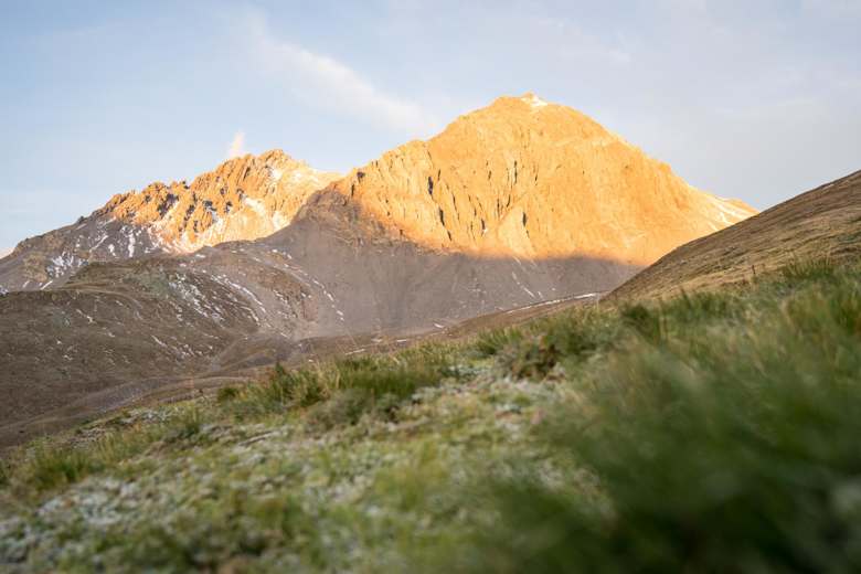 Der Piz Amalia bei Sonnenaufgang. Foto: Dominik Täuber, Tourismus Engadin Scuol Samnaun Val Müstair AG