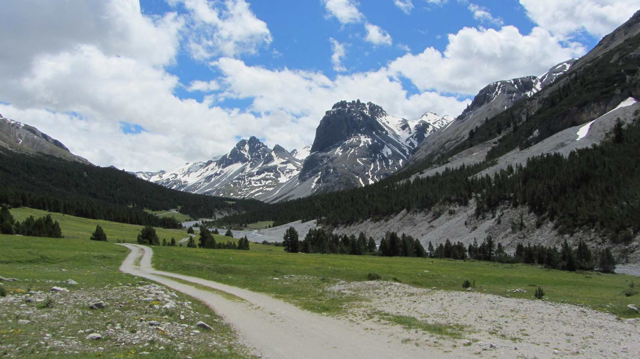 Als Alternative bietet sich die etwas kürzere Variante (Etappe 3A) auf der gegenüberliegenden Talseite über Alp da Munt und Alp Champatsch nach Tschierv an.
