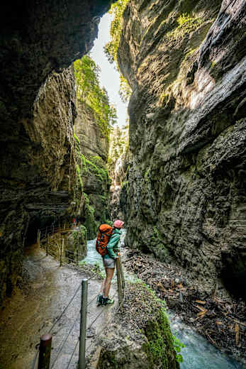 In der Partnachklamm tropft auch nach längeren Trockenzeiten immer reichlich Wasser von den steilen Wänden. Regenbekleidung und festes Schuhwerk sind daher auf jeden Fall zu empfehlen. Solle die Klamm einmal geschlossen sein, kann kann man diese auch über die Partnach Alm umgehen.