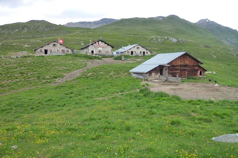 Die Alp Valmala auf 1.973 m bietet den Wandersleuten kleine Erfrischungen und frischen Ziegenkäse an.