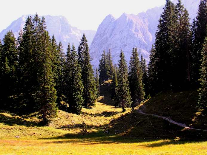 Die Reintalangerhütte auf 1.369 m im Reintal, unweit des Partnach-Ursprungs im Wettersteingebirge in Bayern ist von verschiedenen Seiten aus erreichbar. Unter anderem von Ehrwald in Österreich in der Tiroler Zugsitz Region. Diesen Anstieg kann man zudem durch die Fahrt mit der Ehrwalder Almbahn bis zur Ehrwalder Alm verkürzen.