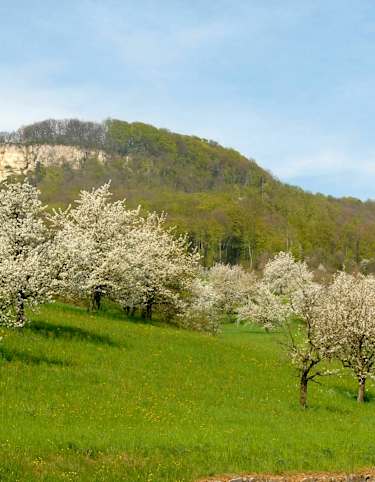 Vor allem in den Frühlingsmonaten verwandelt sich die hügelige Juralandschaft um Liestal im Baselbiet in ein blühendes Kirschparadies. Die mittelschwere Wanderung durch die sonnenverwöhnten Oristaler Hänge führt über Nuglar und Büren nach Ziefen.