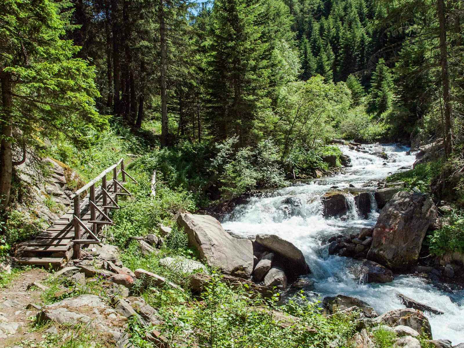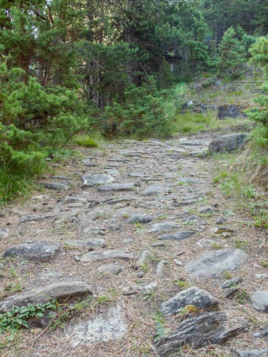 Der alten Napoleonstrasse folgend gelangt man über ein kurzes Verbindungsstück zu einem unterhalb des Fahrwegs gelegenen Saumpfad. Hier steigt man zum „Grund" herab und folgt dem Weg entlang des Tafernabach.