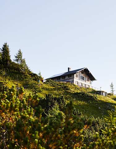 Bald erreicht man das Reichenhaller Haus auf 1.750 m mit toller Aussicht. Außerdem ist das Haus architektonische sehr sehenswert - es klebt praktisch an der schützenden Felswand.