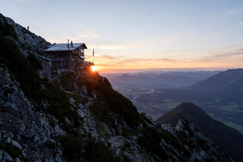 Das Reichenhaller Haus auf 1.750 m schmiegt sich direkt an den Felsen unterhalb des Gipfels des Hochstaufen im Berchtesgadener Land. Als östlichster Gipfel der Chiemgauer Alpen bietet sich von der Terrasse der Hütte eine sensationelle Sicht auf die Alpen im Süden und ins Alpenvorland im Norden. Ein möglicher Zustieg führt von der Padinger Alm oberhalb von Bad Reichenhall über die Bartlmahd zum Reichenhaller Haus.