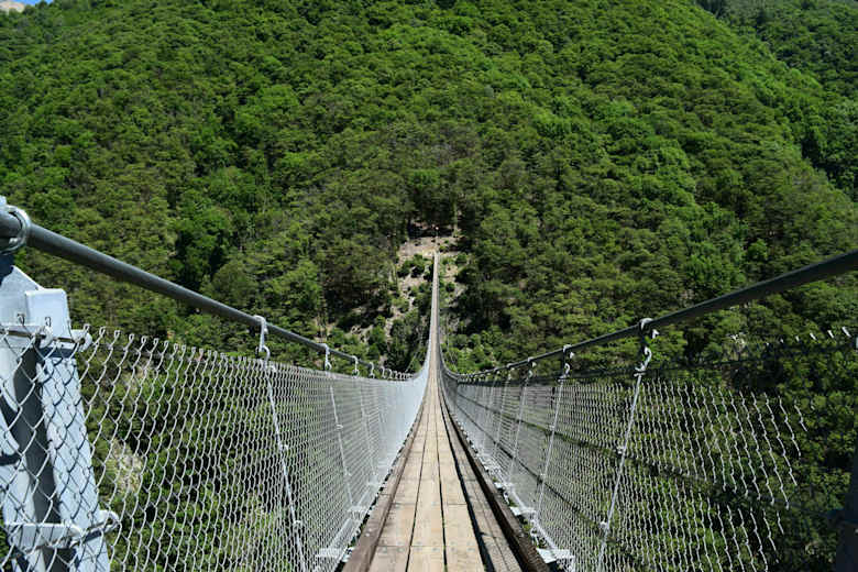 Adrenalinkick und Tessiner Idylle gefällig? Diese Wanderung oberhalb der Magadinoebene im Kanton Tessin führt über eine der längsten Hängebrücken der Schweiz: Die Tibetische Brücke (659 m) liegt 130 m oberhalb eines Baches und bietet auf einer wackeligen Länge von 270 m eine fantastische Aussicht. Die Rundtour führt an romanischen Kirchen und sonnigen Weingütern vorbei in das wunderschöne und lebendige Dorf Curzútt (596 m), welches für seine aufwändig renovierten Bauten bekannt ist.