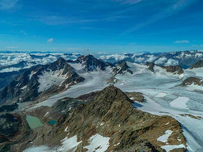 Diese anspruchsvolle Wanderung startet in Ridnaun-Maiern im gleichnamigen Tal in Südtirol. Der Aufstieg über 1.860 Höhenmeter verläuft vorbei an der Grohmannhütte, der Teplitzer Hütte und dem eindrucksvollen Übeltalferner. Die Tour verlangt Kondition und Trittsicherheit.