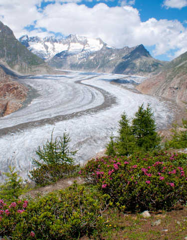 Durch idyllische Waldweiden führt der Wanderweg am Weiler Maschihüs vorbei zur napoleonischen Steinbogenbrücke über den Chrummbach. Man durchquert den Weiler Egga, anschließend führt der Saumpfad durch den über der Deponie des Gletschersturzes von 1901 gewachsenen Lärchenwald.