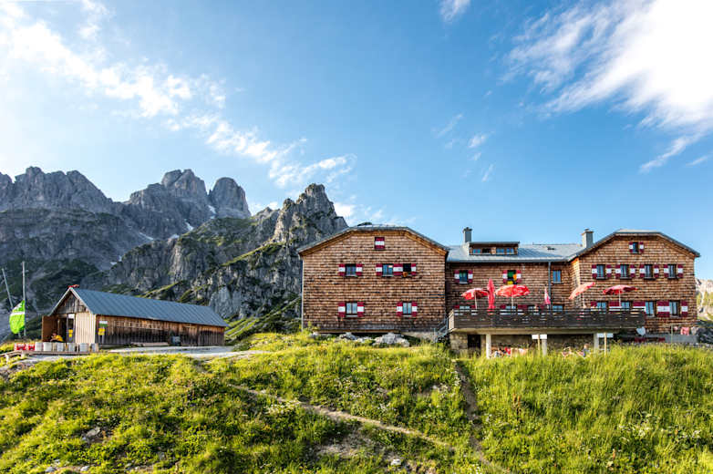 Die Hofpürgl-Hütte liegt im westlichen Teil des Dachsteinmassivs. Foto: Bernhard Fiedler / Red Bull Media House Publishing Bildergalerie (3)