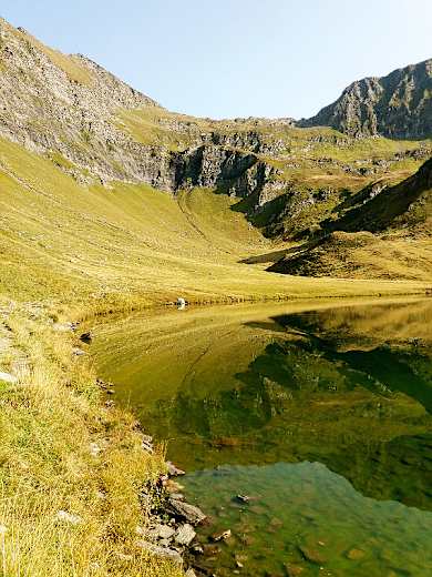 Der grösste Bergsee des Tessins liegt ganz still zwischen Bergen und Wiesen und wird zur Energieerzeugung genutzt. Dem linken Seeufer folgend, biegt der leicht ansteigende Weg in Richtung Lago Tom (2.022 m) ab.
