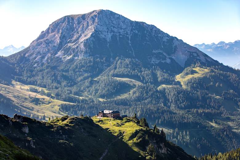 Die Hofpürglhütte (1.705 m), unterhalb der imposanten Gipfel der Großen (2.458 m) und Kleinen Bischofsmütze (2.430 m) im westlichen Teil des Dachsteingebirges gelegen, gilt als idealer Ausgangspunkt für eine Vielzahl von Wanderungen und Klettertouren mit unterschiedlichen Schwierigkeitsgraden.