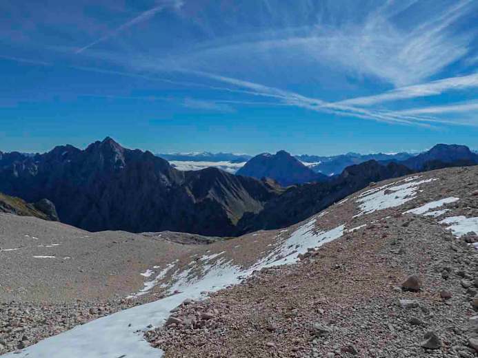 Nach der Auffahrt mit der Zahnradbahn von Garmisch-Partenkirchen zur Bergstation Sonn-Alpin (2.589 m) genießt man erst einmal die beeindruckende Landschaft des Zugspitzplattes. Der Weg bringt den Wanderer hinüber zum Weg mit der Nr. 801 und dem E4 alpin.