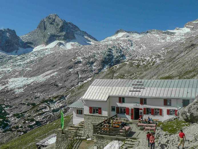 Die Knorrhütte (2.052 m) im Wettersteingebirge liegt südlich der Zugspitze am Rande des Zugspitzplattes. Neben dem langen Zustieg über das Reintal bietet sich vom Tiroler Ehrwald ein zweiter schöner Aufstieg an. Dabei überschreitet man am bekannten Gatterl die Grenze zwischen Bayern und Tirol. Die Tour kann zudem durch eine Auffahrt mit der Gondelbahn zur Ehrwalder Alm verkürzt werden.