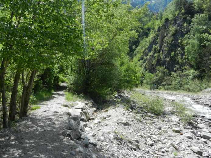 Ausgangspunkt der Wanderung ist der Bahnhof von Brig (681 m). Von dort läuft man an der Saltina entlang, vorbei am Freiluftschwimmbad Geschina und dem großen Campingplatz, bis zur Saltinabrücke. Dort führt eine Steinstraße dem Fluss entlang bis zum Kraftwerk Grindji.