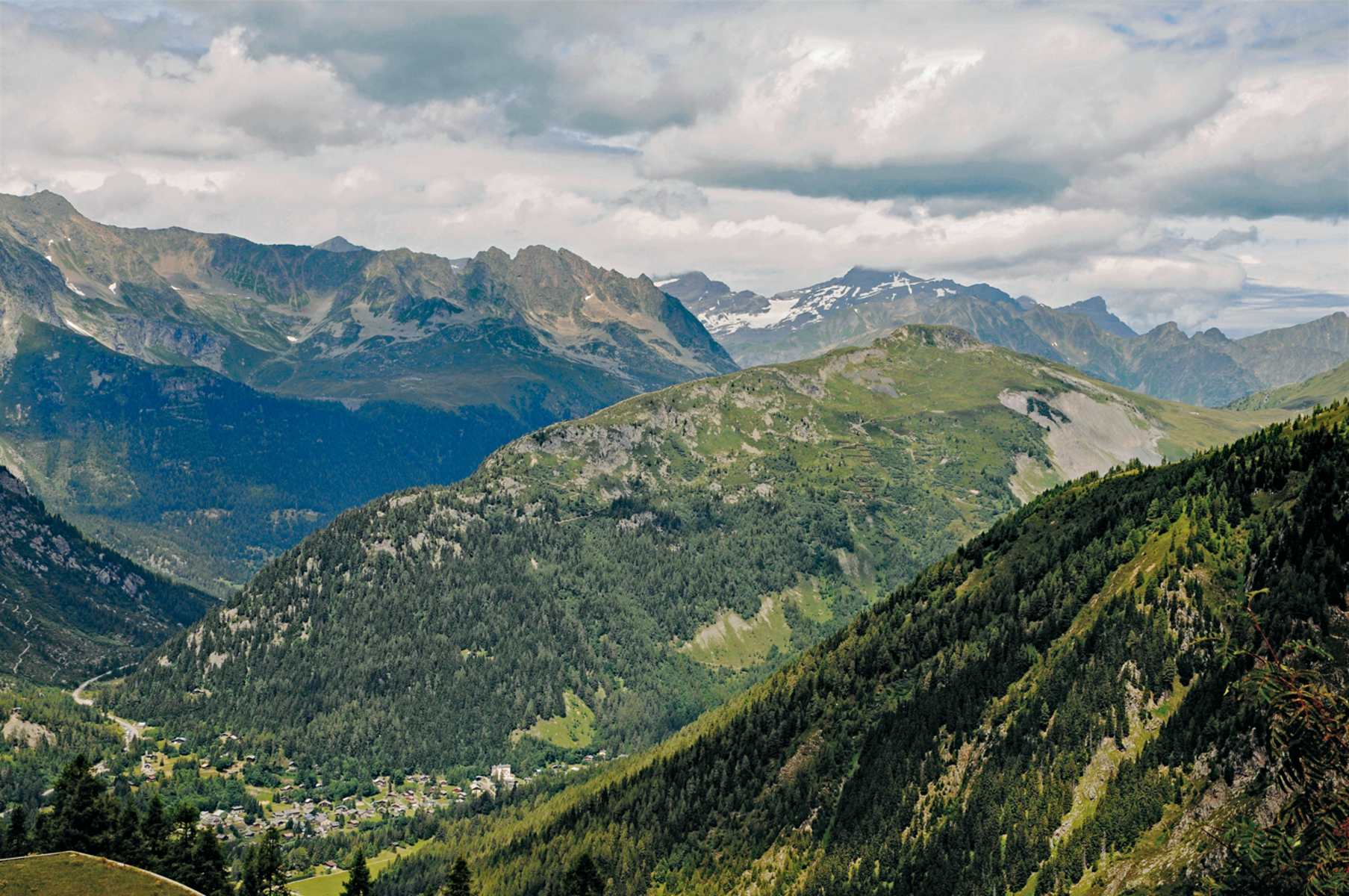 Man steigt den folgenden breiten Rücken entlang des Skilifts etwa 200 m Höhenmeter hinauf, bis ein Weg fast horizontal unterhalb der Tête de Balme hindurch zum Col de Balme leitet. In wenigen Min. zur Bergstation. Von hier schwebt man zu Tal nach Le Tour.
