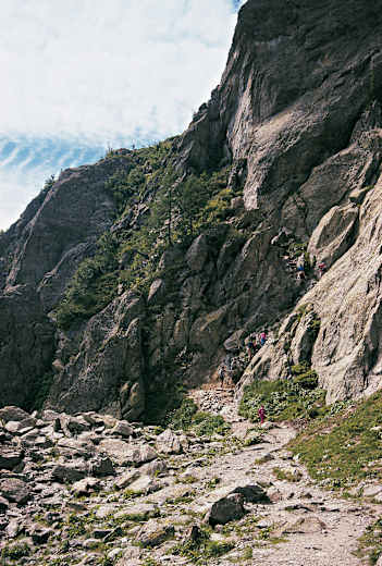 Einer der wenigen mit Steighilfen versehenen Wanderwege: Der Aufstieg vom Weiler Tré-le-Champ zum Lac Blanc gehört zu den besonders lohnenden Wanderungen im gesamten Mont-Blanc-Massiv. Allerdings ist dieser Weg, bedingt durch die große Höhendifferenz und den – wenn auch sehr einfachen – Klettersteig nicht allen Bergwanderern uneingeschränkt zu empfehlen.