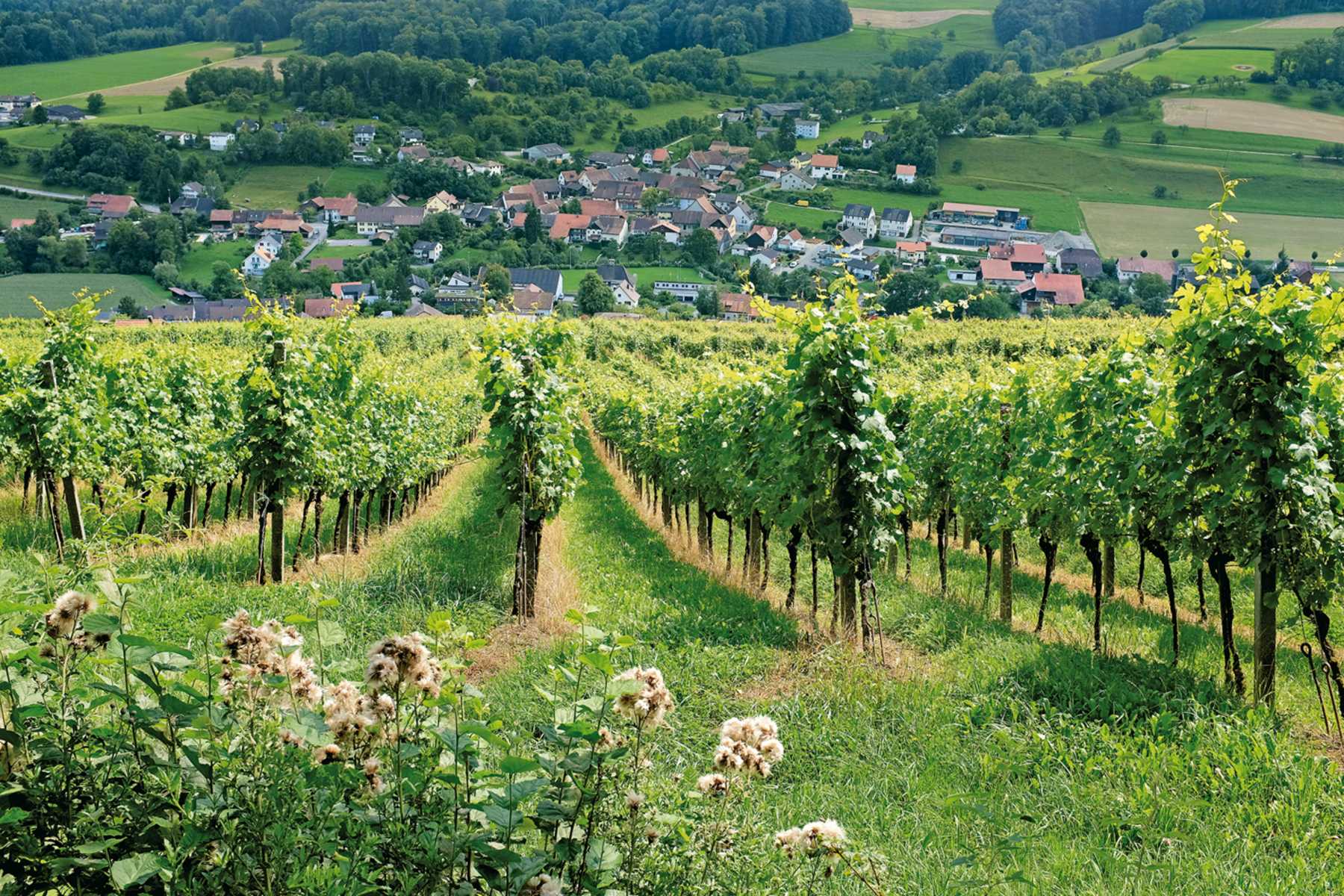 Nach Verlassen des Waldes folgt man der oberen Begrenzung des Rebbergs hinunter nach Schinznach Dorf – Oberdorf.