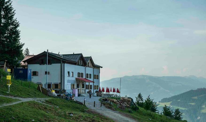 Die Gaudeamushütte (1.267 m) liegt auf der sonnigen Südseite des Kaisergebirges. Die Hütte ist ein beliebter Stützpunkt bei der Umrundung des Gebirges. Der übliche Zugang erfolgt von der Wochenbrunner Alm. Ein sehr schöner, wenn auch etwas ungewöhnlicher Zustieg beginnt in Scheffau und führt entlang der Südhänge des Kaisers zur DAV Hütte.