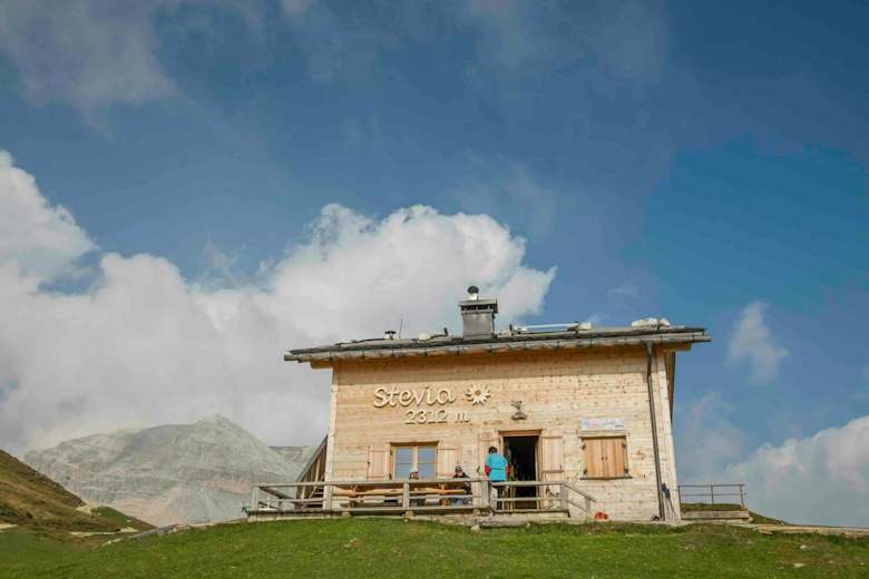 Die Steviahütte (2.312 m) liegt im Naturpark Puez-Geisler oberhalb von Wolkenstein. Die Hütte hat einen Logenplatz gegenüber von Sella- und Langkofelstock. Auf der sonnigen Terrasse kann man die prächtige Aussicht genießen und sich von den herzlichen Wirtsleuten verwöhnen lassen.