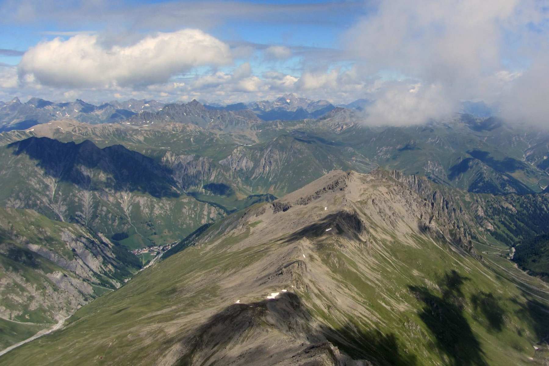 Blick vom Muttler auf das Val Maisas, Samnaun Dorf und Val Sampuoir Foto: Tourismus Engadin Scuol Samnaun Val Müstair AG