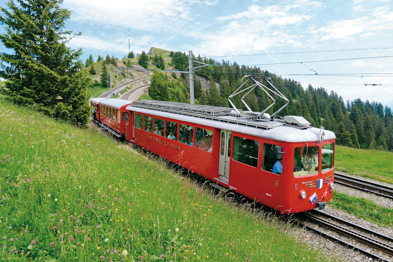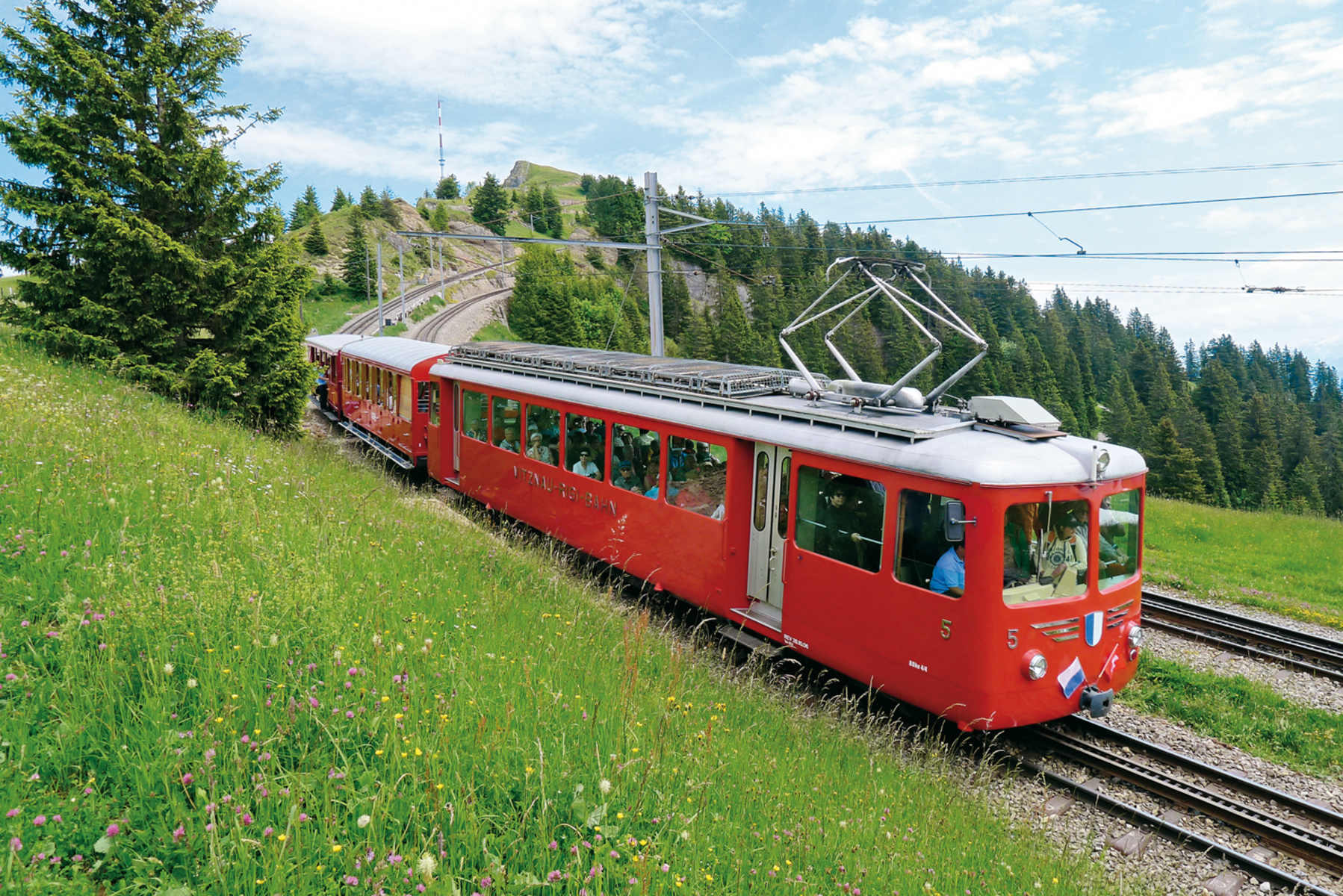 Von Rigi Kulm mit der Zahnradbahn nach Arth-Goldau.