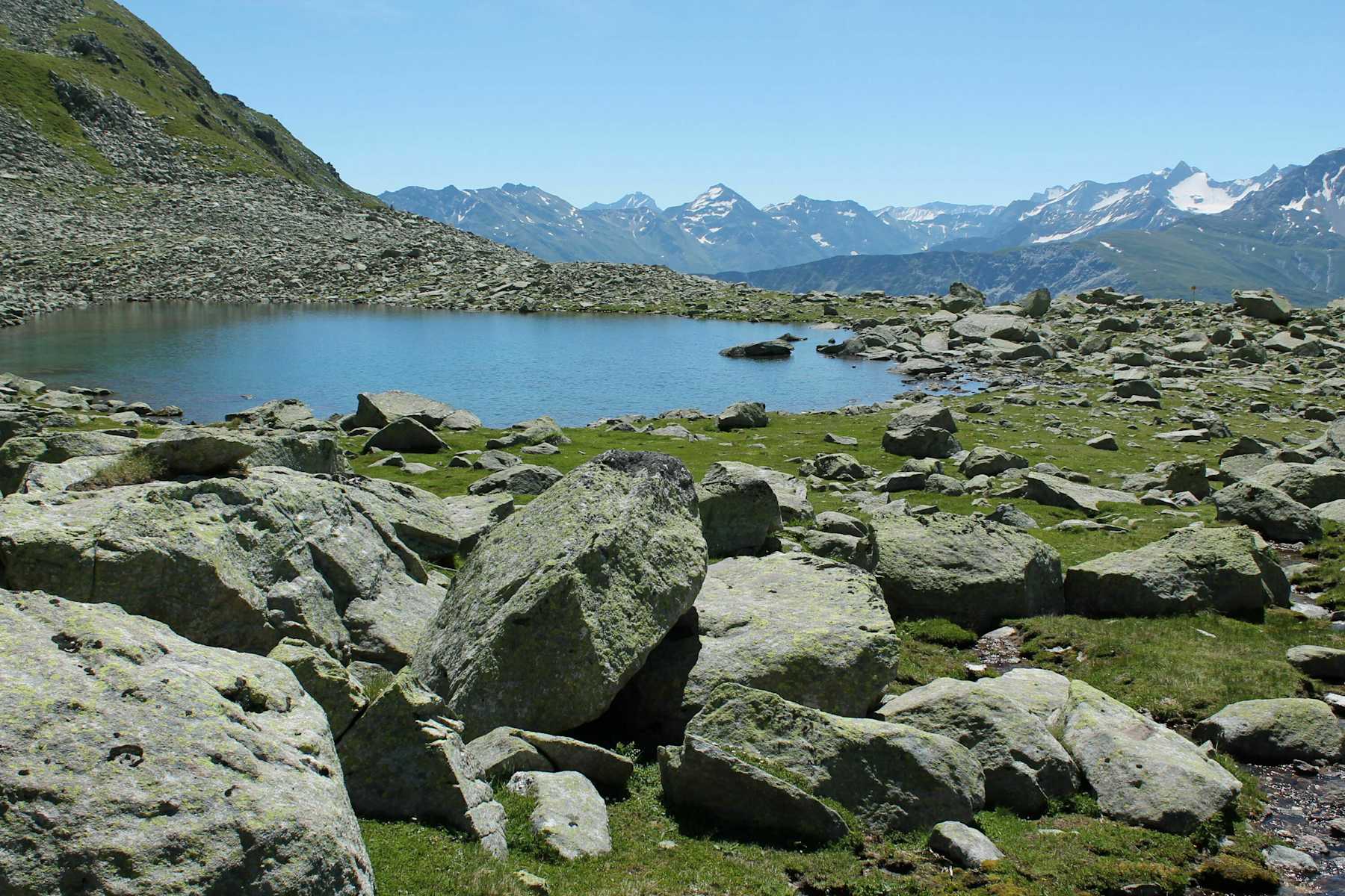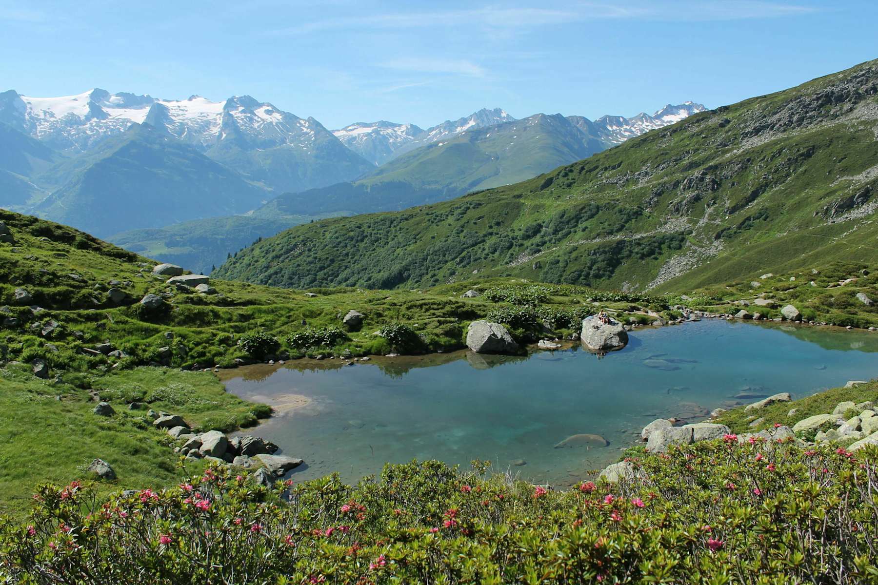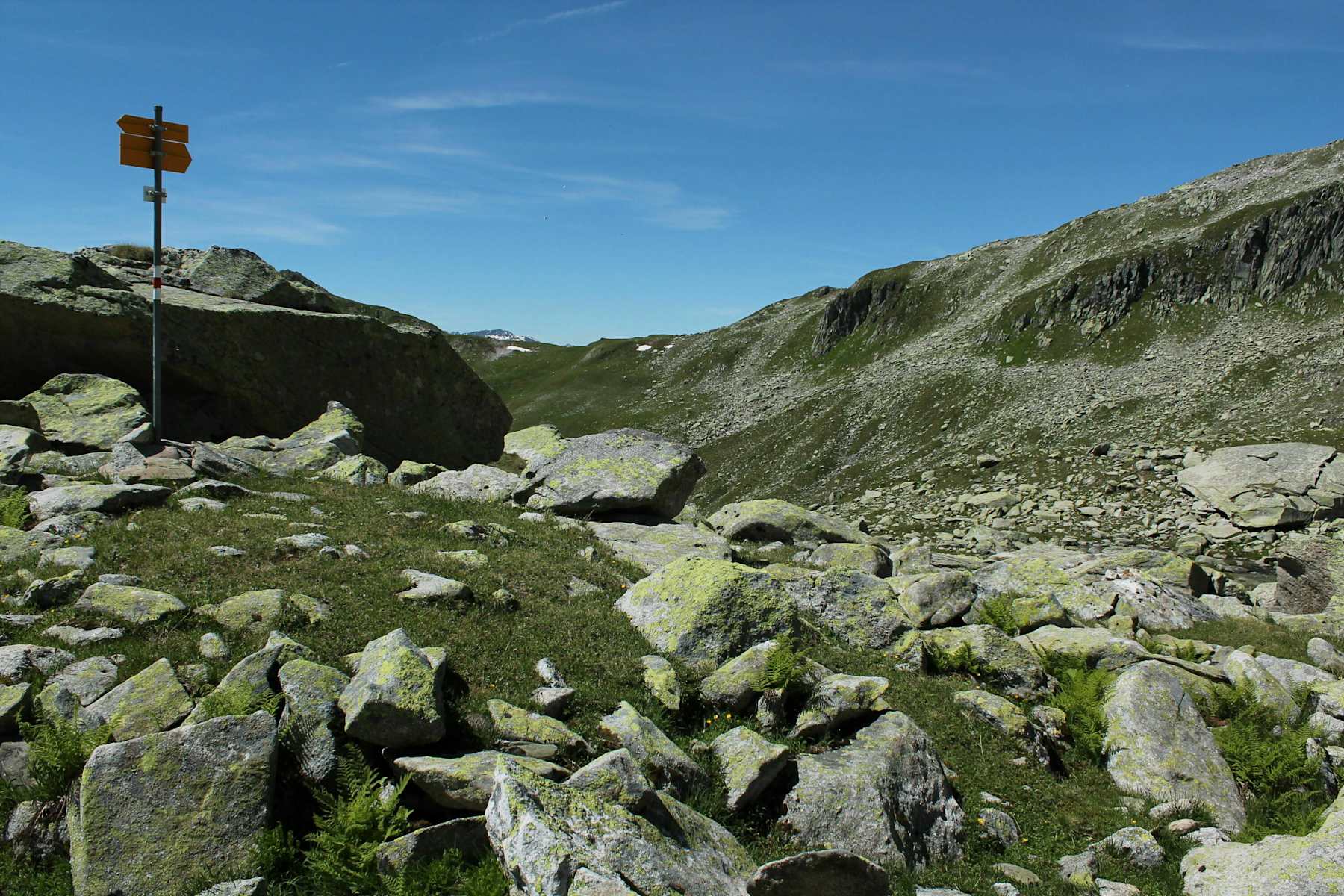 Mit der Luftseilbahn geht es bequem von Acletta nach Caischavedra. Von hier folgt man dem leicht ansteigenden Wanderweg durch eine Moorlandschaft und später durch Alpenrosenstauden zum Lag Serein.