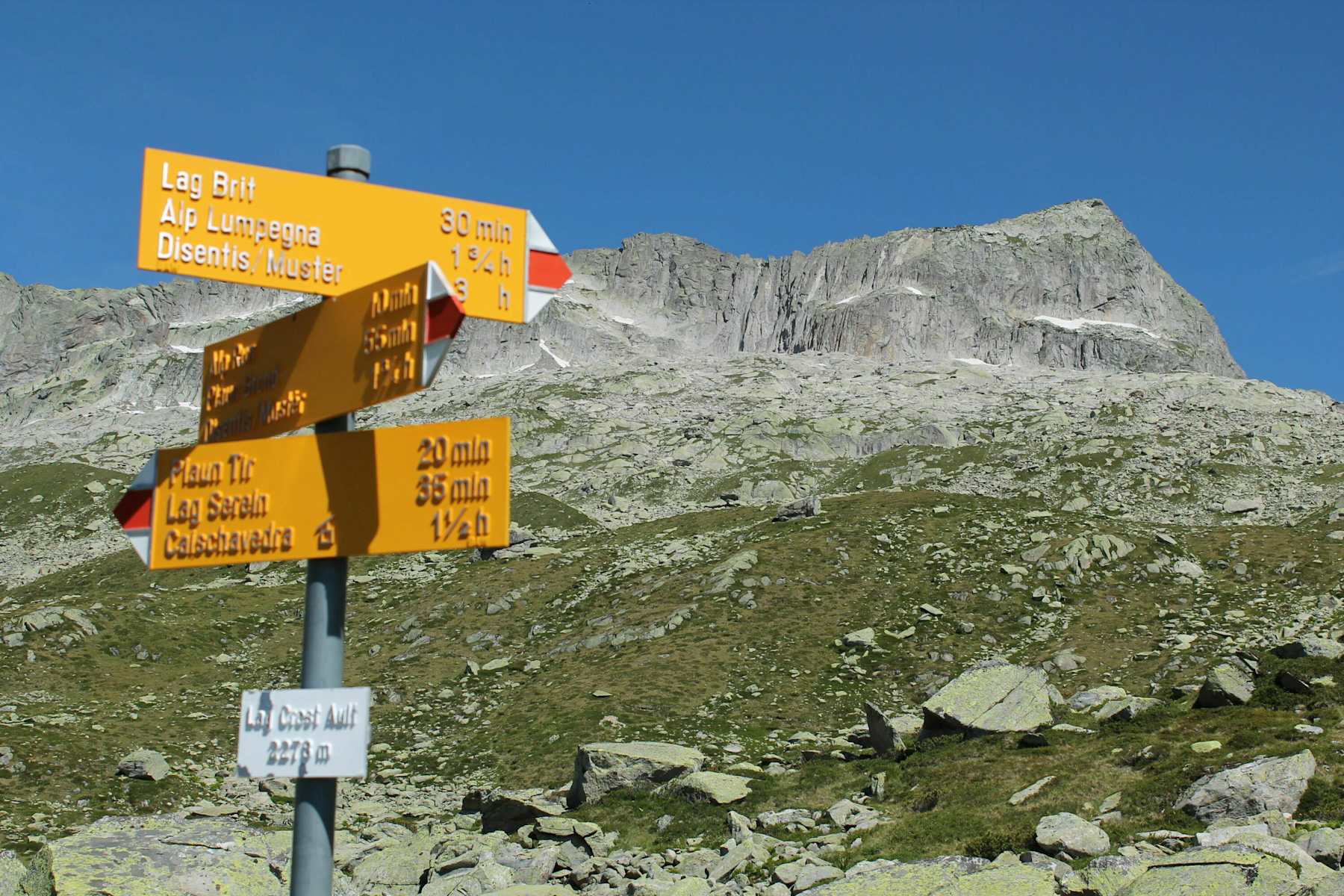 Aussichtsreiche und sonnige Wanderung im Kanton Graubünden mit Liftunterstützung zu den idyllischen Bergseen Lag Serein, Lag Crest Ault und Lag Brit. Die Tour lockt mit abwechslungsreicher Landschaft und tollen Ausblicken auf die Surselva und die umliegenden Gipfel der Glarner Alpen.