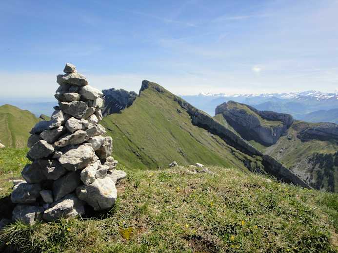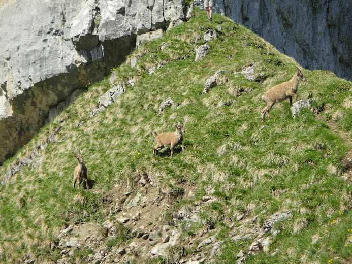 Auf den letzten querenden Anstiegsmetern zum (etwas niedrigeren) Gipfelkreuz; im Hintergrund der Sarnersee Foto: Felix Deprez Auf dem Gemsmätteli zeigt sich junges Steinwild lange aus der Nähe Foto: Felix Deprez Beim Steinmann Widderfeld erfreut die Aussicht zu Tomlishorn, Pilatus und Matthorn Foto: Felix Deprez Bildergalerie (3)