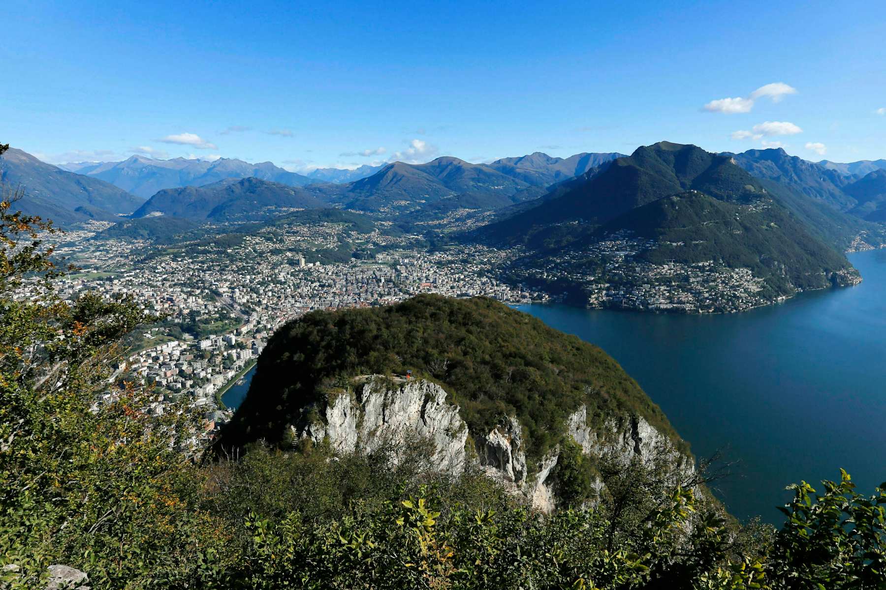 Alpenrosen, Azaleen, Savoyer Alpen, Poebene, Luganersee: Die Wanderung auf dem San Salvatore oberhalb von Lugano im Tessin bietet herrliche Ausblicke auf die gesamte Region. Der Panoramaweg führt vom Gipfel des San Salvatore (893 m) bis hinunter zum See in Morcote (273 m).