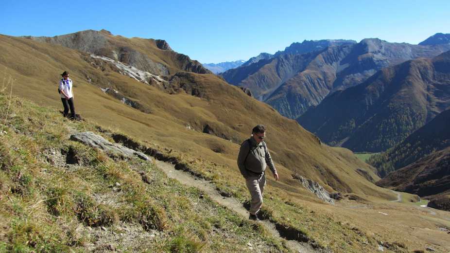 Beim Bergli kann man einen kleinen Abstecher auf den Salaaser Kopf (2.744 m) machen oder man folgt der Route weiter über die Zeblaswiesen zum anspruchsvollen Abstieg über die Fahrstrasse ins Val Masauna und weiter nach Samnaun.