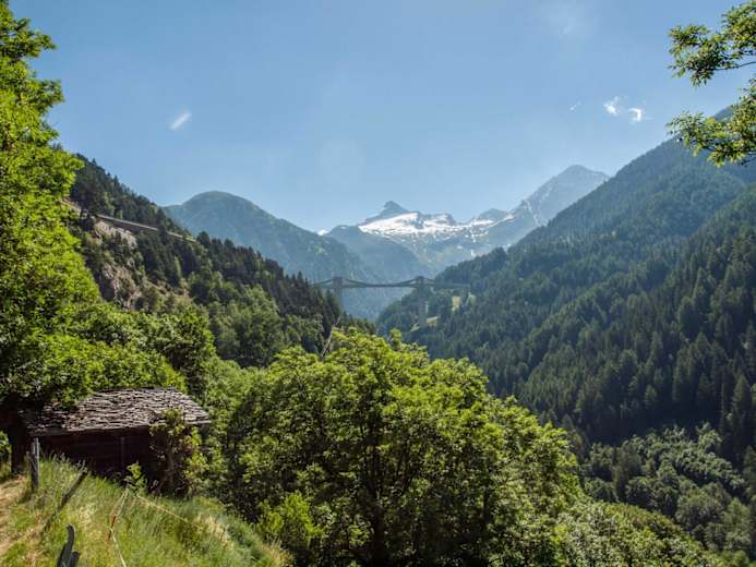 Schöne Rundwanderung im Gantertal über Eisten und Berisal in der Leone-Gruppe. Die Route in der einstigen bewohnten Talschaft führt zur Napoleonischen Ganterbrücke (1.405 m) und bietet auch beeindruckende Blicke auf die neue Ganterbrücke.