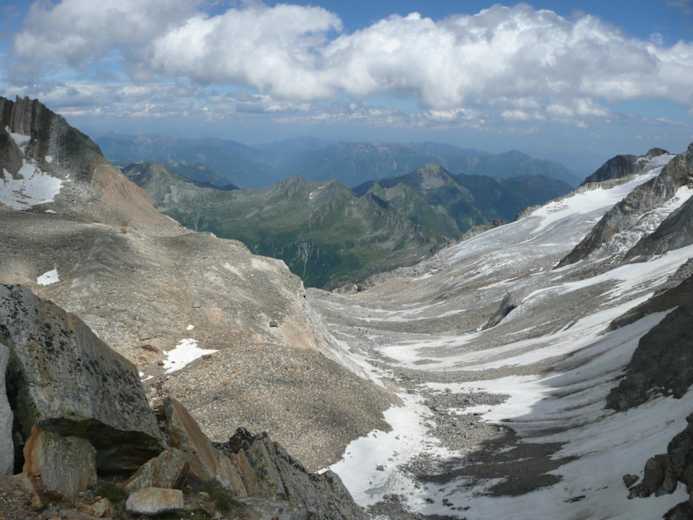 Der Abstieg vom Pass führt ins abgelegene Saastal, einem Walliser Seitental, wo die Almagellerhütte (2.894 m) mit schönem Blick auf gleich neun Viertausender der Wallsier Alpen zur Einkehr und Stärkung einlädt, bevor das Ziel, das kleinste und hinterste der vier Saastaldörfer, Saas-Almagell (1.670 m), erreicht wird.