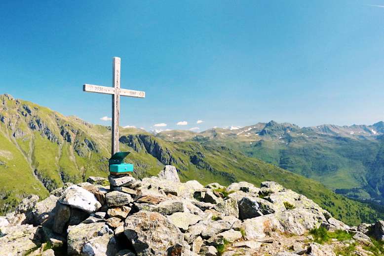 Auf dieser Tour kann man einen schönen Gipfel „mitnehmen“: den Hochtristen mit 2.535 m. Der Weg zweigt links von der Hauptroute ab und das Gipfelkreuz ist in rund 20 min zu erreichen.