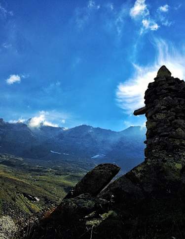 Der schmale Pfad verläuft zunächst noch über Wiesengelände und schlängelt sich dann in zahlreichen Serpentinen über schottriges Gelände steil hinauf. Kurz vor der Hütte überquert man flache Felsplatten, in deren Nähe man oft Gämsen beobachten kann.
