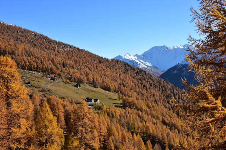 Abwechslungsreiche Wanderung im Simplongebiet in den Walliser Alpen. Die Tour im Kanton Wallis führt von Engeloch, zwischen Simplonpass und Simplon Dorf gelegen, zu den Alpen am Fuße des Fletschhorns.