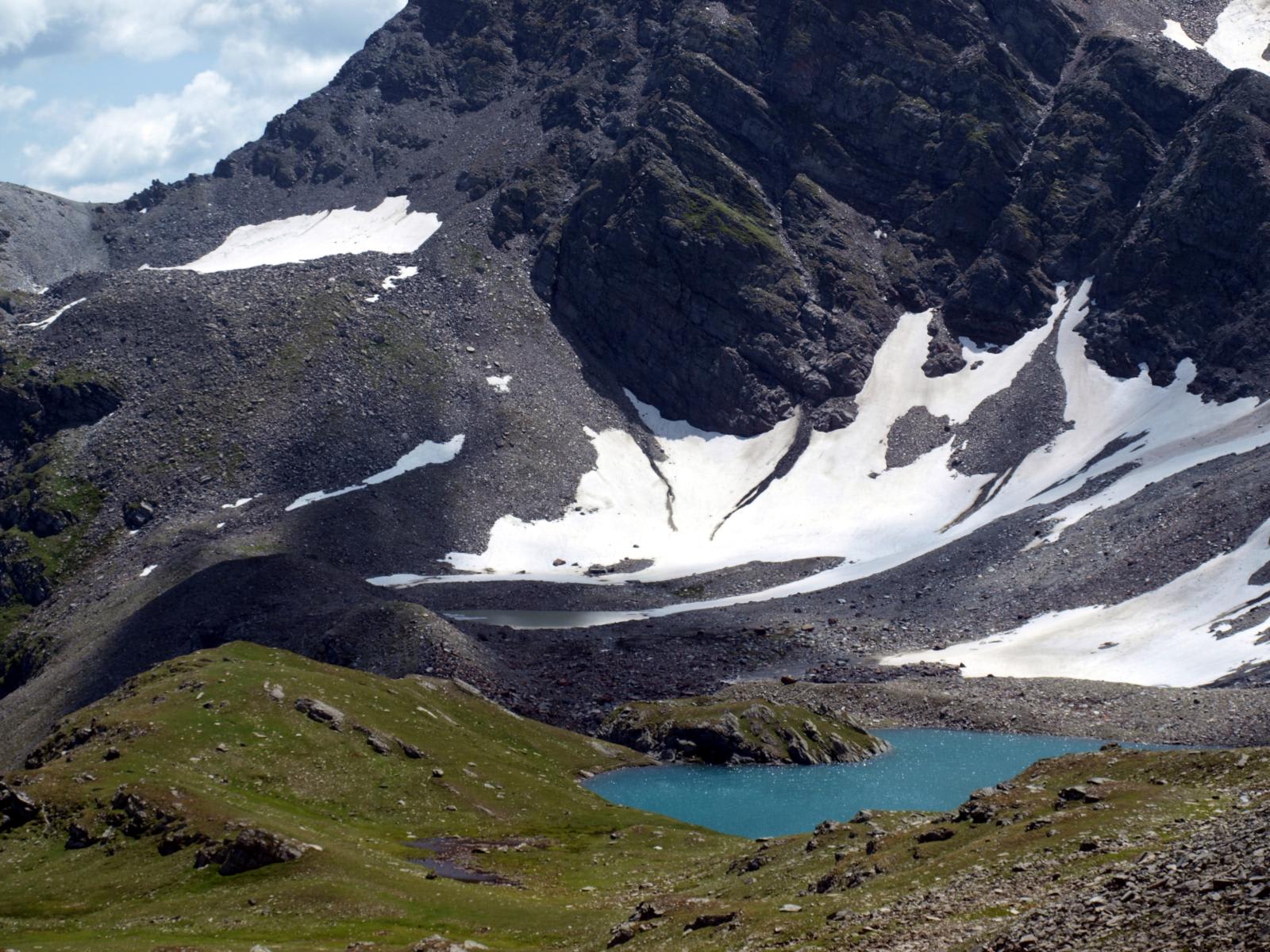 Kurz darauf biegt man nach rechts, quert den Bach und umgeht den Fels, der hinter sich den schönen Sirwoltesee verbirgt. Nach einer Rast am klaren Bergsee geht es auf gutem und markiertem Weg zum Sirwoltesattel (2.621 m), dem höchsten Punkt der Wanderung. Das Mattwaldhorn und der Gamsagletscher tauchen vor dem Wanderer auf, und gegenüber zieht der sanfte Weg über das Obere Fulmoos zum Gebidem. Man passiert die ehemalige Militärunterkunft und geht hinunter in den Gebidemweg. Dann biegt man rechts ab und setzt die Wanderung auf dem gut unterhaltenen einstigen Militärsaumweg fort, vorbei am Gale- und Magehorn zur Rechten.