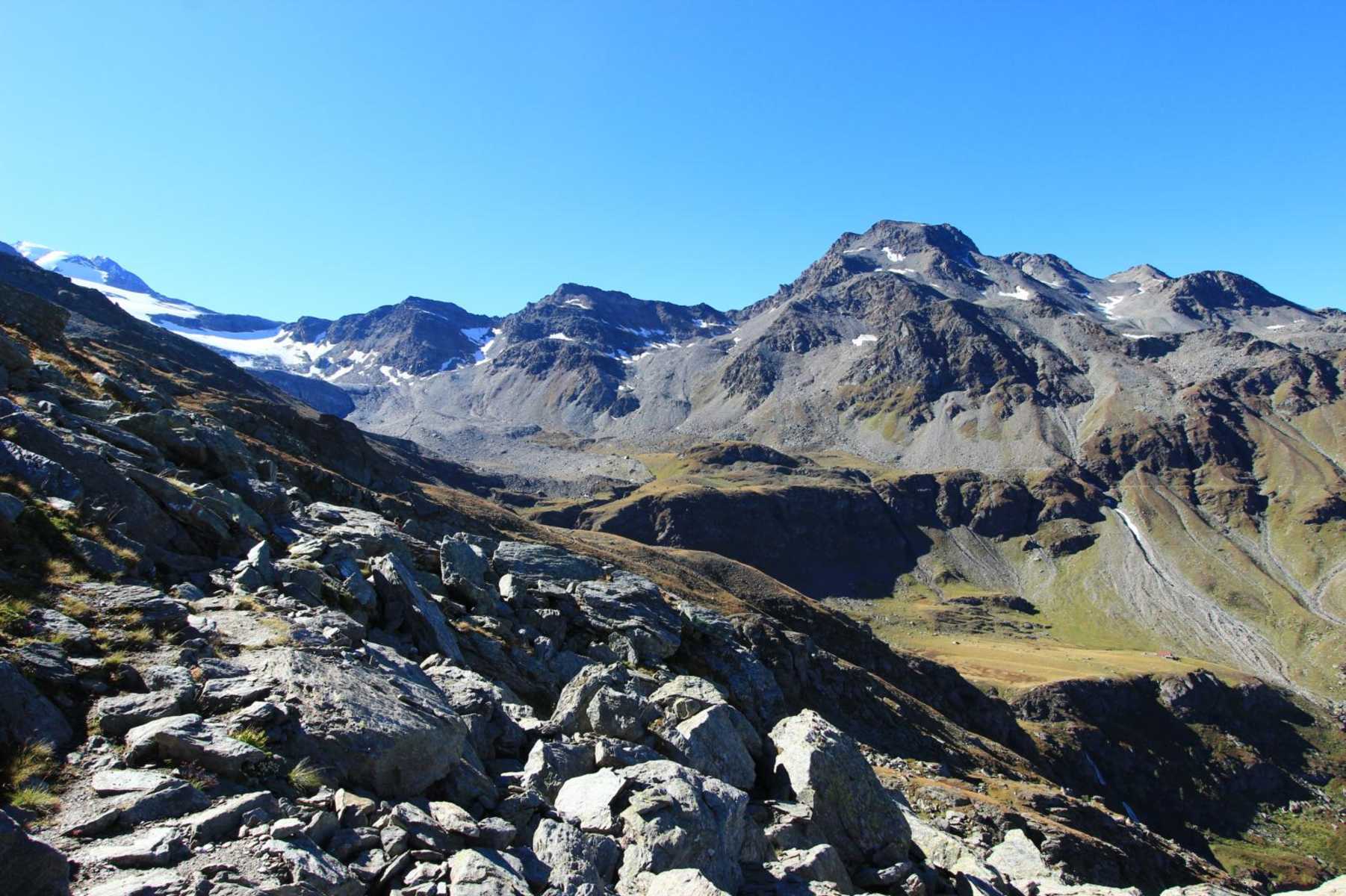 A: An Stelle vom Bistinenpass weiter zur Äusseren Nanzlücke wandern und zwischen Straffelgrat und Tochuhorn zum Simplonpass zurückkehren. An der Ostflanke des Tochuhorns führt ein breiter, gut markierter Weg, der den Wanderer nach Hopsche und weiter zum Simplonpass leitet.