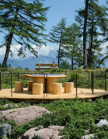 Auf der Brennerautobahn bis zur Ausfahrt Klausen und weiter in Richtung Seiser Alm bis nach Seis. Mit der Seilbahn zur Bergstation der Seiseralmbahn in Kompatsch.