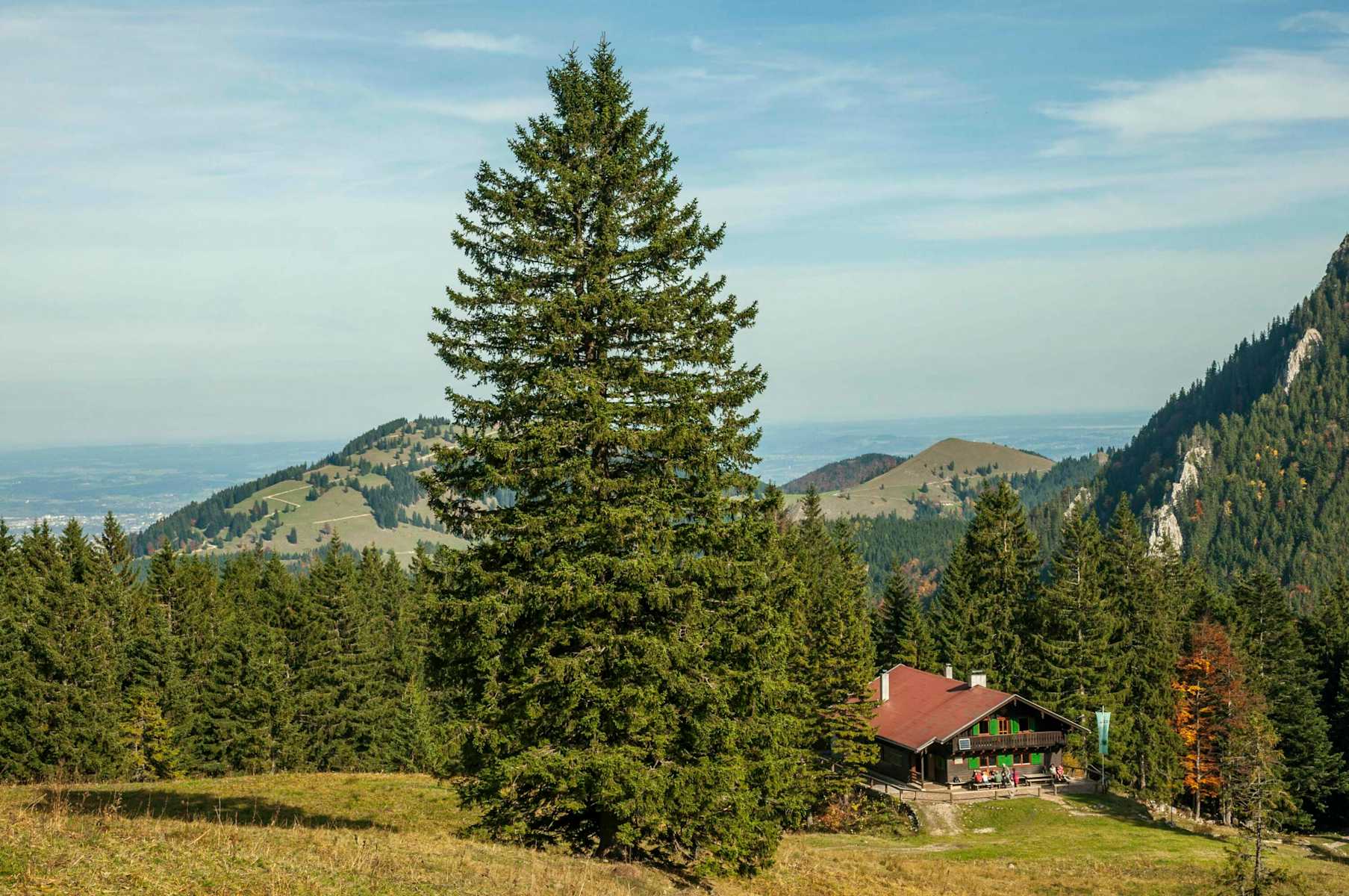 Hier wendet man sich nach rechts an den Durhamer Almen vorbei zur Wegverzweigung oberhalb der Aiblinger Hütte (1.311 m). In wenigen Minuten spaziert man nach rechts zur nahen Hütte.