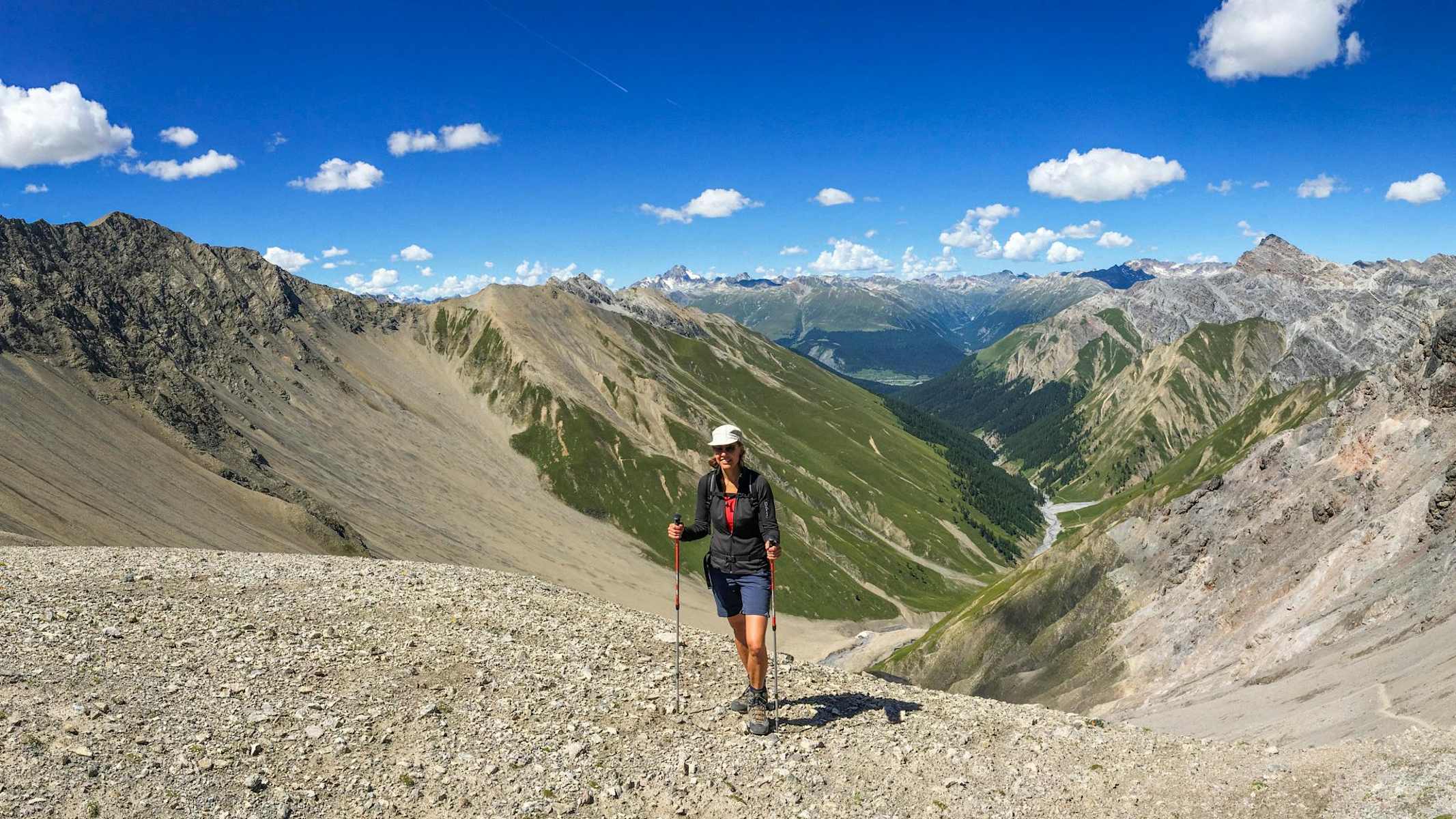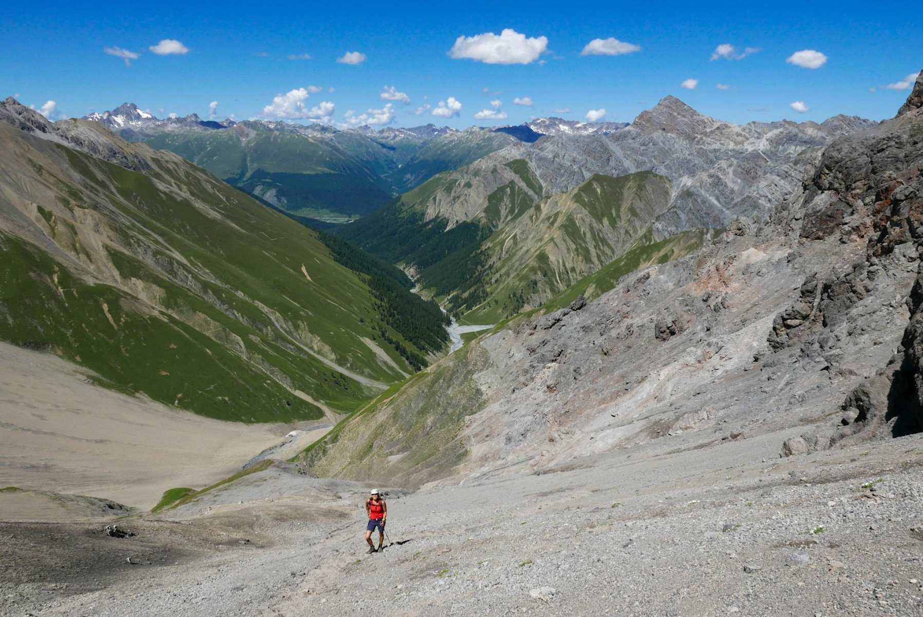 Ziel erreicht: Val Trupchun und Piz d’Esan von der Fuorcla Trupchun aus gesehen. Foto: Schweizerischer Nationalpark, Hans Lozza, Tourismus Engadin Scuol Samnaun Val Müstair AG Im steilen und rutschigen Aufstieg zur Fuorcla Trupchun Foto: Schweizerischer Nationalpark, Hans Lozza, Tourismus Engadin Scuol Samnaun Val Müstair AG Im Abstieg von der Fuorcla Trupchun aus lassen sich im Sommer immer wieder Rothirsche und Steinböcke beobachten. Foto: Schweizerischer Nationalpark, Hans Lozza, Tourismus Engadin Scuol Samnaun Val Müstair AG Bildergalerie (3)