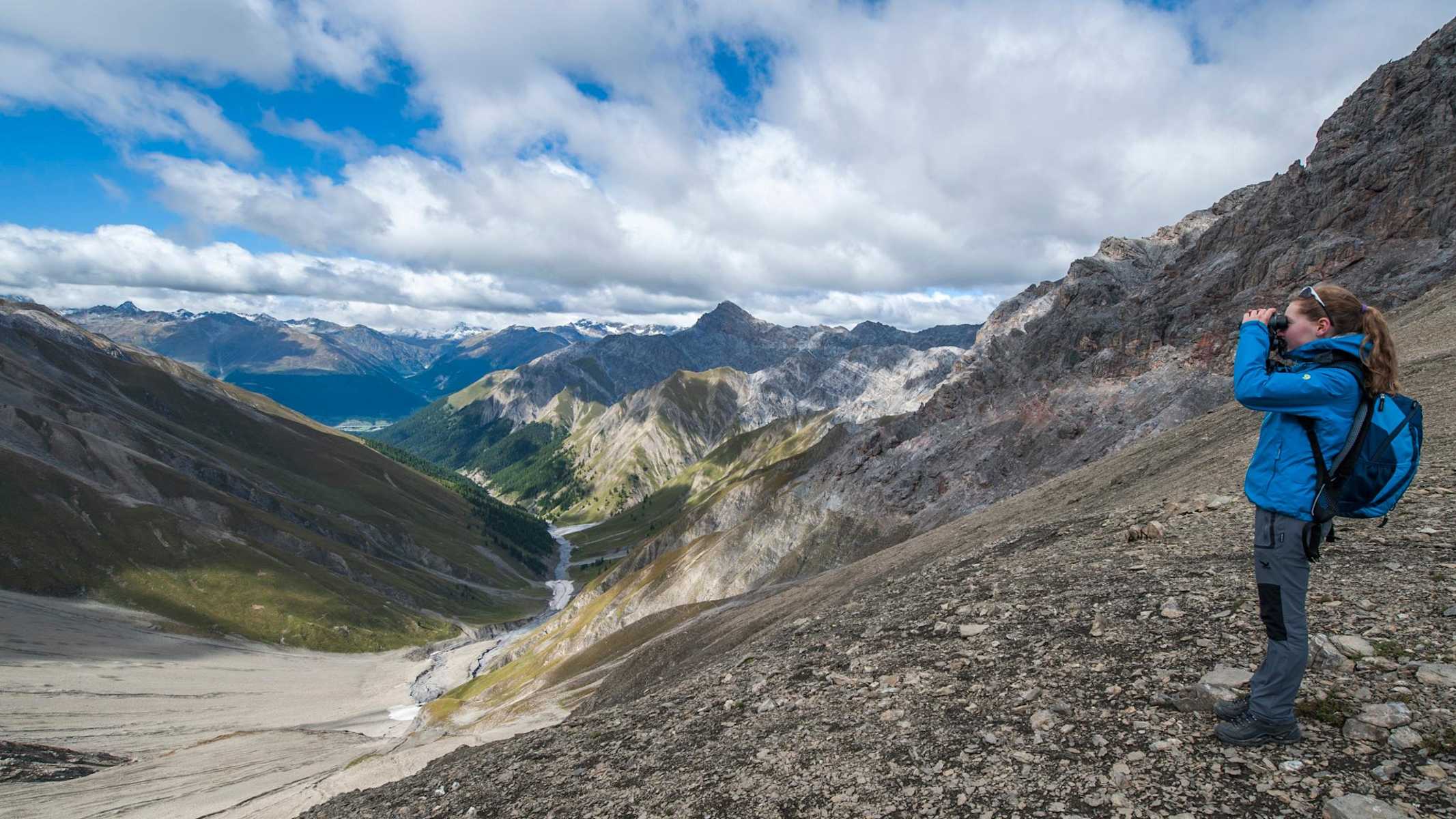 Technisch anspruchsvolle Wandertour in den Abula Alpen im schweizerischen Graubünden: Über lose Schotterreissen bis zum Talschluss des wildreichen Val Trupchun führt diese abwechlungsreiche Tour. Die Wanderung bis zur Alp Trupchun kann mit dieser Tour verlängert werden und besticht vor allem durch die Möglichkeit der Beobachtung der imposanten Steinböcke.