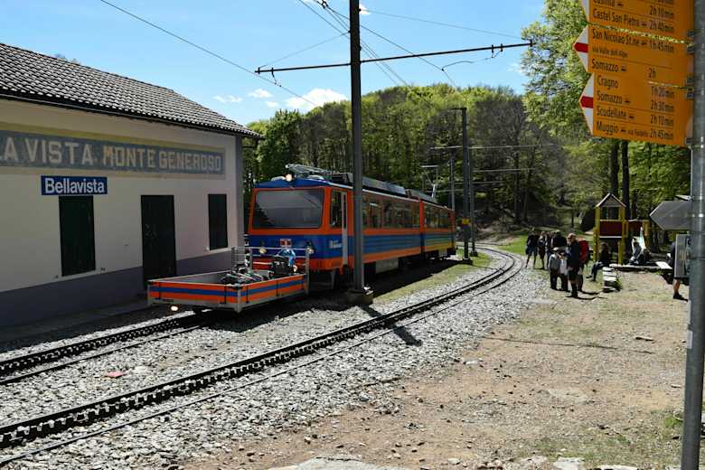 Mit den SBB bis Capolago-Riva S. Vitale und von dort mit der Zahnradbahn nach Bellavista.