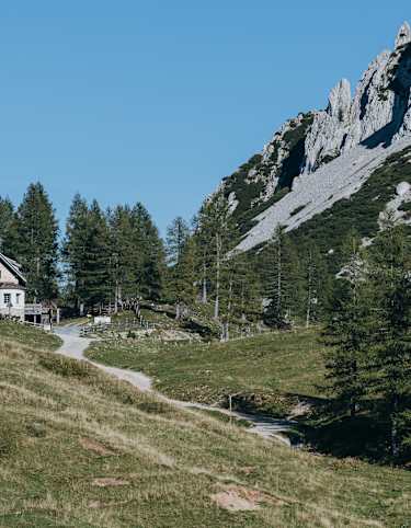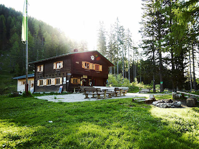Moderat geht es durch den Wald aufwärts, bis man auf den Weg Nr. 679 trifft, der rund um die Ferlacher Spitze führt. Man hält sich rechts und erreicht nach wenigen Minuten die kleine, schön gelegene Bertahütte auf 1.567 m.