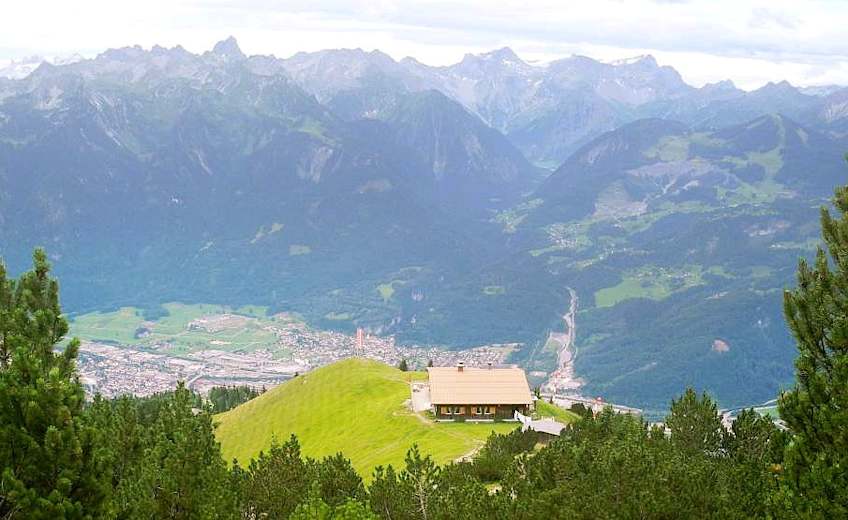 Schließlich erreicht man die Frassenhütte auf 1.725 m, die in sehr sonniger Lage eine wunderbare Aussicht hinunter in das Becken des Walgaus sowie auf die Gipfel des Rätikons im Süden ermöglicht.