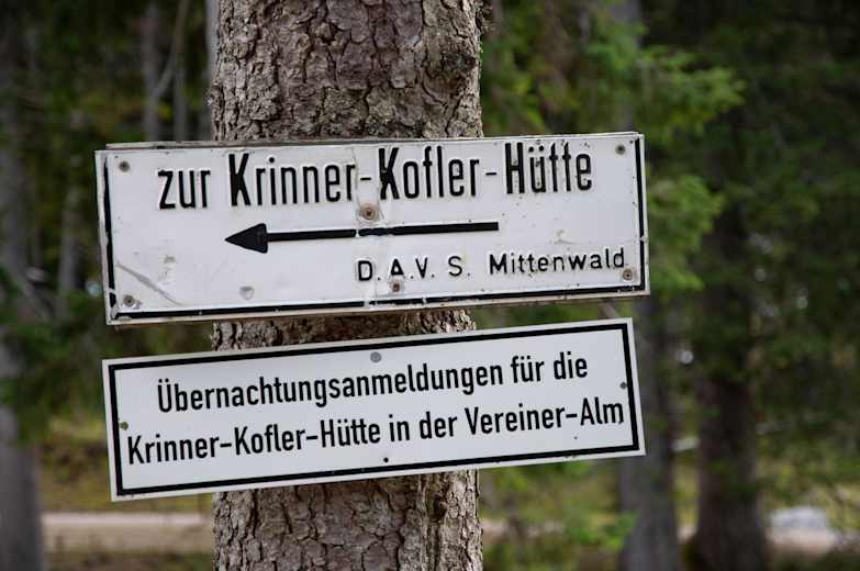 Die Krinner-Kofler-Hütte ist eine Selbstversorgerhütte, die im Karwendel noch auf der Deutschen Seite östlich von Mittenwald auf 1.407 m steht. Sie ist mit dem Mountainbike über eine Fahrstraße gut erreichbar, aber auch für Wanderer führt ein schöner Steig zur Hütte.