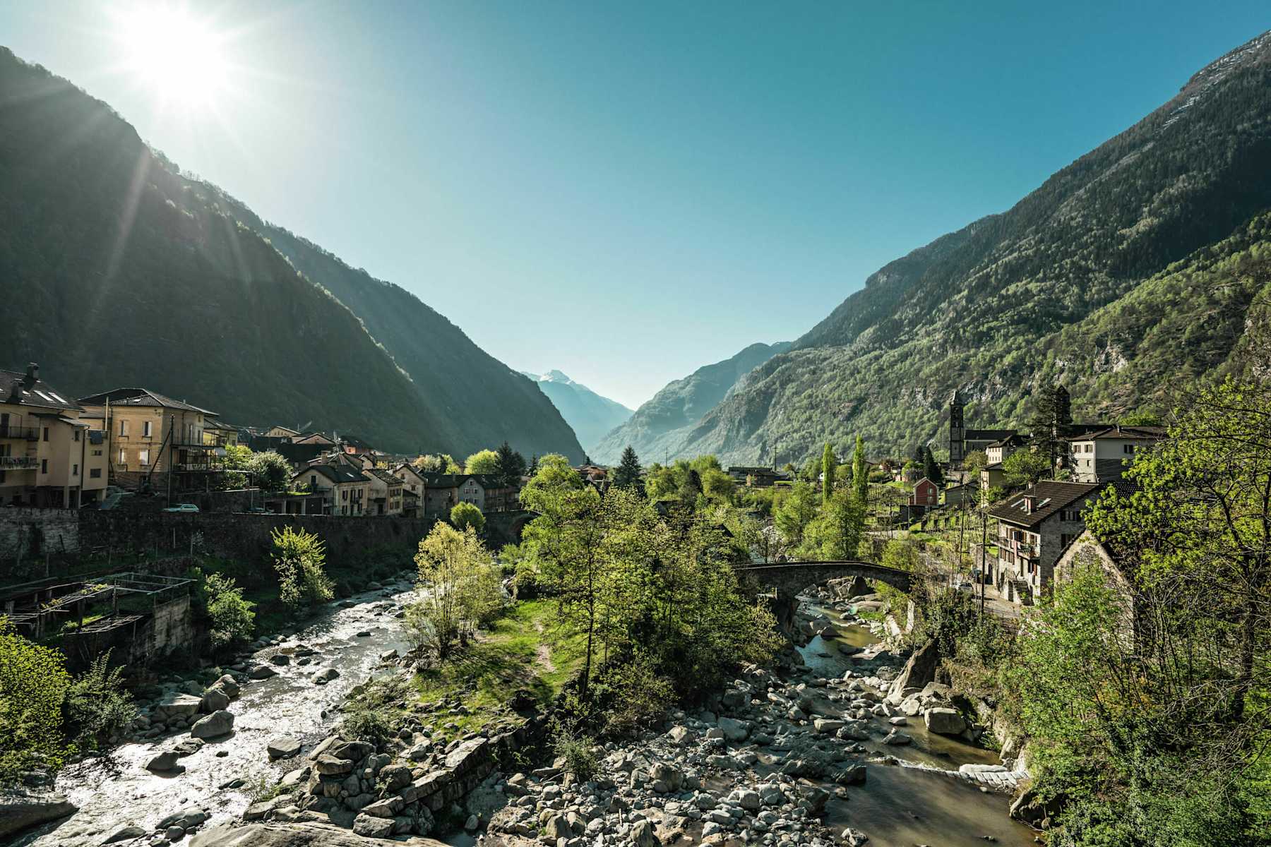 Auf der A2 bis Ausfahrt Faido und von dort auf der Route 2 in südlicher Richtung bis Giornico, Paese fahren.