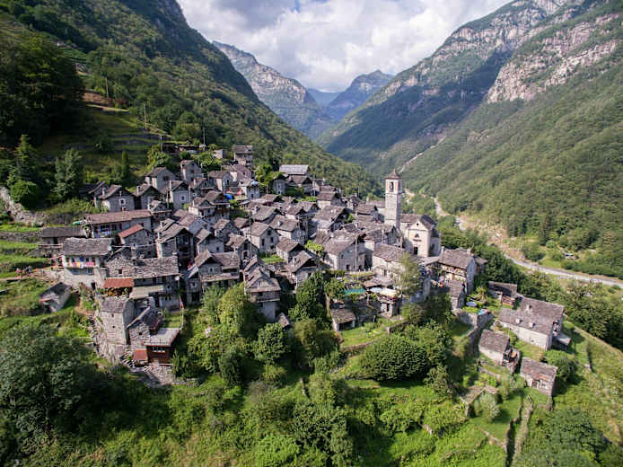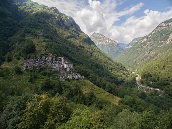 Diese landschaftlich reizvolle Wanderung führt von Mergoscia, dem Mittelpunkt des Kantons Tessins, vorbei an dem Stausee von Vogorno bis in wunderschöne Bergdorf Corippo.