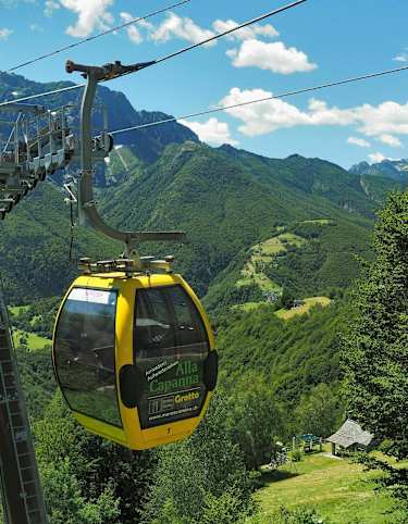 Mit den SBB bis Bahnhof Locarno und von dort mit dem Postauto (Linie 315) bis Haltestelle Bignasco, Posta und von dort mit dem Postauto (Linie 331) bis Haltestelle Bosco/Gurin, Paese fahren. Anschließend mit der Seilbahn zur Bergstation (Gossalp) fahren.