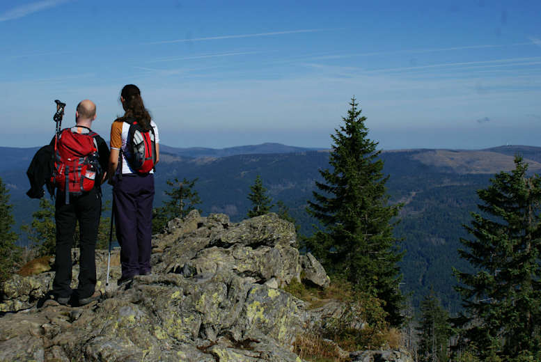 Der Große Rachel ist der höchste Berg im Nationalpark Bayerischer Wald und Ziel einer mittellangen, jedoch anstrengenden Wanderung. Auf der Rundtour, die ab Gfäll startet, sind jeweils 520 Höhenmeter bergauf und bergab in teils alpinem und steilem Gelände zu bewältigen. Die Aussicht und die Möglichkeit noch zwei weitere kleine Abstecher für einen Ausblick einzufügen, entlohnen jedoch für die Anstrengung und lassen einen die herrliche Wald- und Bergwelt des Nationalparks Bayerischer Wald in Niederbayern genießen.
