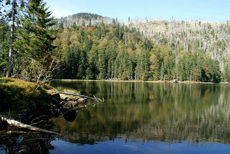 Am Waldschmidthaus lohnt sich ein kleiner Abstecher zum Seeblick. Hier folgt man einem ca. 100 m langem Pfad und kann dann die Aussicht über den Rachelsee und die Höhenzüge des Böhmerwald genießen. Später ergibt sich noch ein Abstecher direkt zum Rachelsee, um eine Verschnaufpause während des Abstiegs einzulegen.
